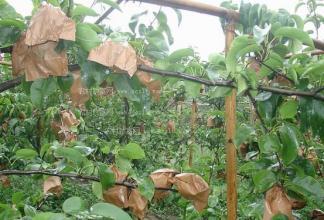 5月的接連降雨,有利于梨黑星病、褐斑病病菌侵染,褐斑病病葉率2%,估計6月中上旬將會中度發作。為避免把損害果實的病、蟲災如輪紋病、黑星病、黃粉蟲、康氏粉蚧套入袋內,套袋前有必要嚴厲噴一遍殺蟲、殺菌劑,留意選用不易發作藥害的高效殺蟲、殺菌劑。殺菌劑要統籌保護性和醫治性,醫治劑可選用福星或烯唑醇,保護性殺菌劑可選用大生、易保、代森錳鋅,保護劑和醫治劑各選一種。