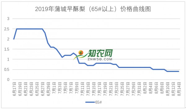 2019年蒲城早酥梨(65#以上)價格曲線圖